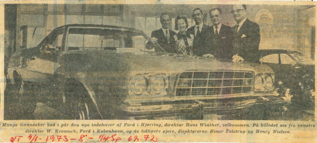 Hans blev tilknyttet Ford Motor Compagni i 1946. I 1951 blev han reklamechef. I 1955 marketingschef med salg og reklame under sig. Han var medlem af Ford’s Europa-reklameråd, og det betød rejser til det meste af Europa, herunder også Canada og USA i slutningen af 1950’erne. Mon ikke han også besøgte sin bror Sofus Winther, som var ansat på Ford-fabrikken i Detroit og arbejdede sig op til at blive “Foreman”. I 1963/1964 bliver Hans marketing direktør i Aarhus Motorkompagni, som reelt var Ford-forhandler på det tidspunkt. I 1973 køber Hans Hjørring Motor Compagni, som også forhandlede Ford-biler. Desværre ramte oliekrisen i 1973 også Hans og familien. De mistede alt økonomisk. Familien flyttede til Københavns-området og startede forfra. Og det lykkes heldigvis for Hans og Gudrun at komme på godt på fode igen. På et tidspunkt flytter de til Birkerød, som bliver deres sidste fælles bopæl. Hans dør som 86-årig d. 19. juli 2004.